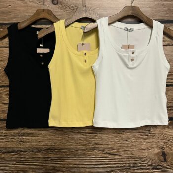 Regata Canelada Botão Decote