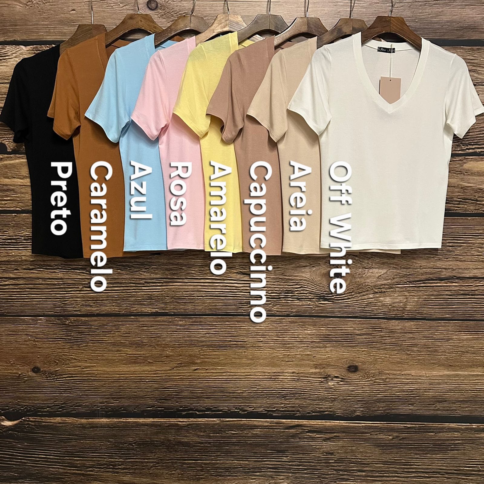 Amarelo, Areia, Azul, Capuccinno, Caramelo, Off White, Preto, Rosa