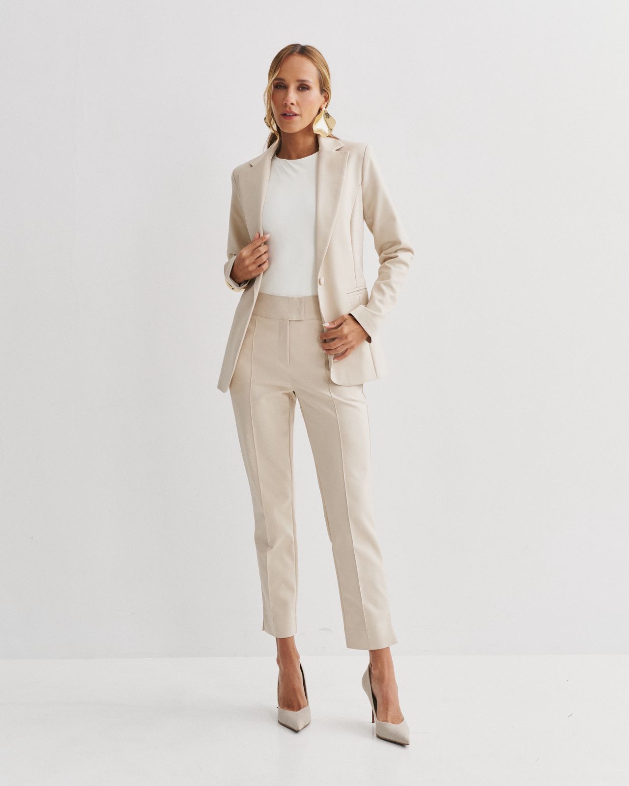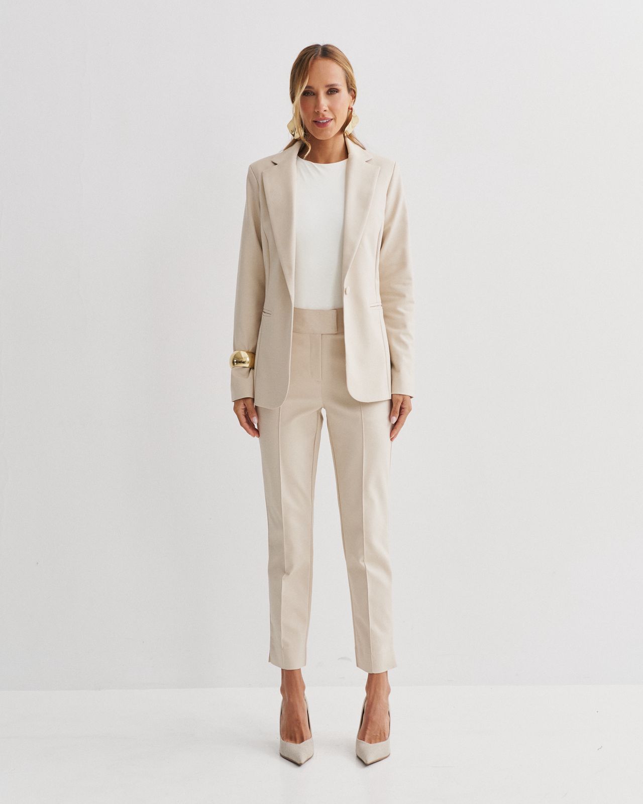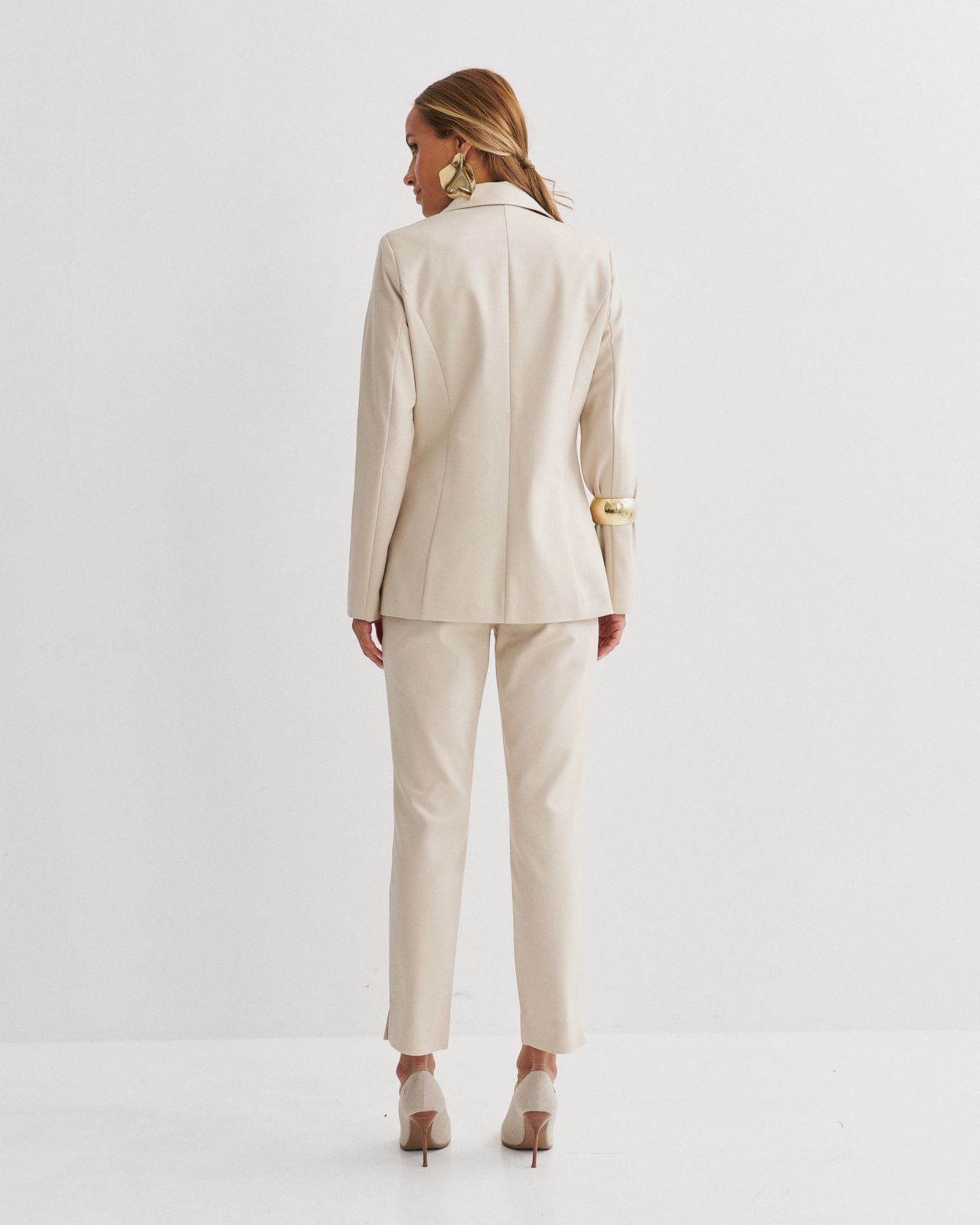 BLAZER EM COTTON POLY ACINTURADO COM FECHAMENTO EM BOTÃO FORRADO