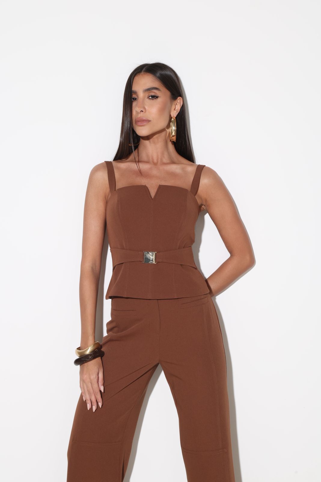 Faixa com fivela aplicada na cintura