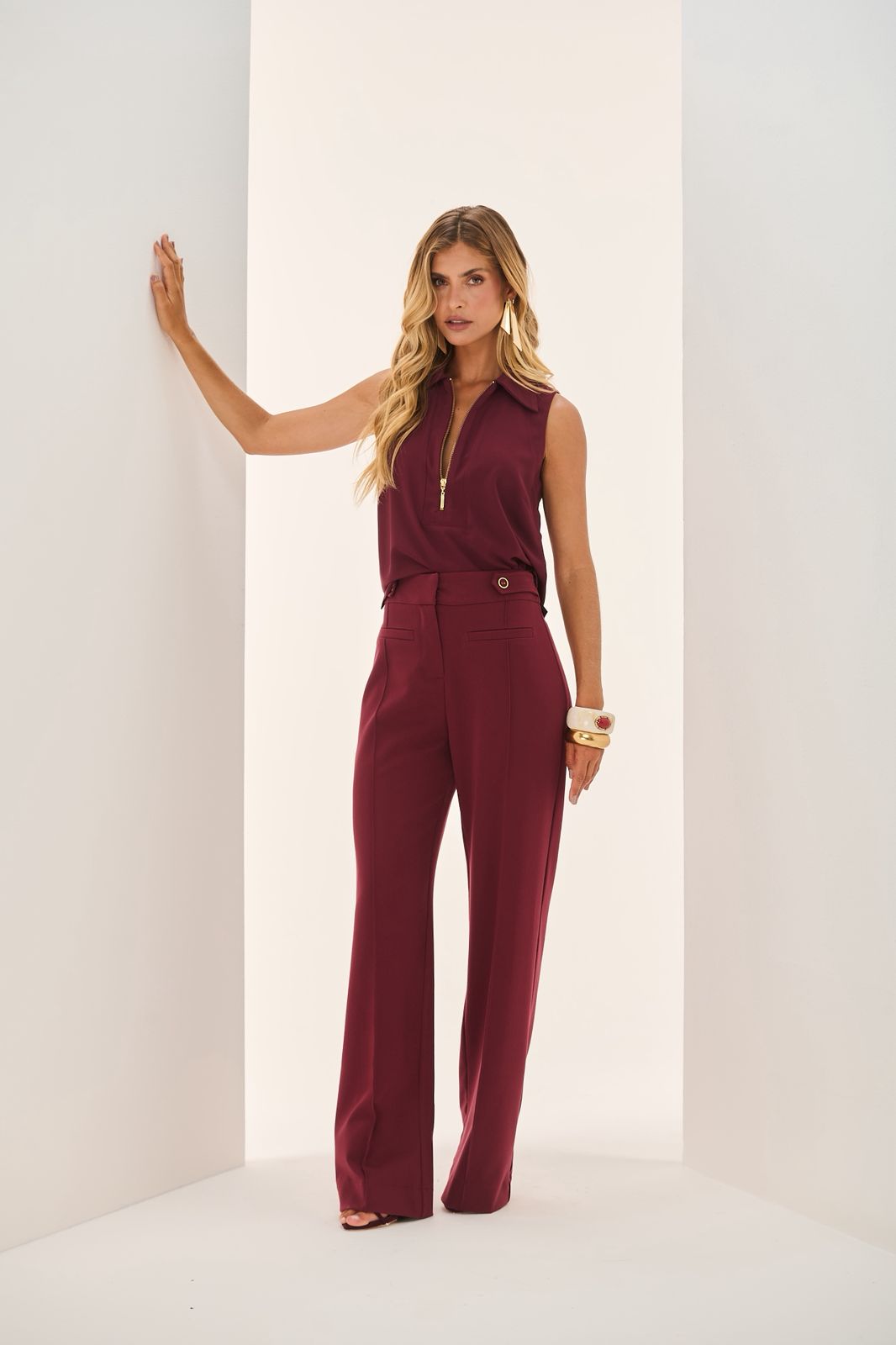 Crepe leve, fluido e confortável Zíper no decote como detalhe de destaque Modelagem reta com caimento elegante Fácil de combinar com alfaiataria ou peças mais casuais