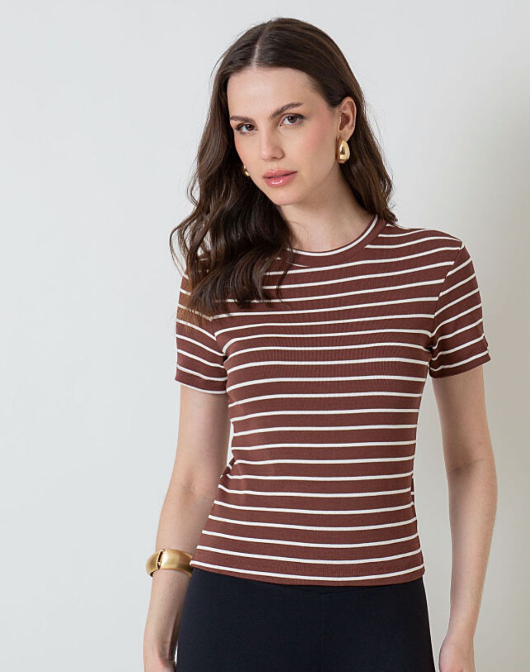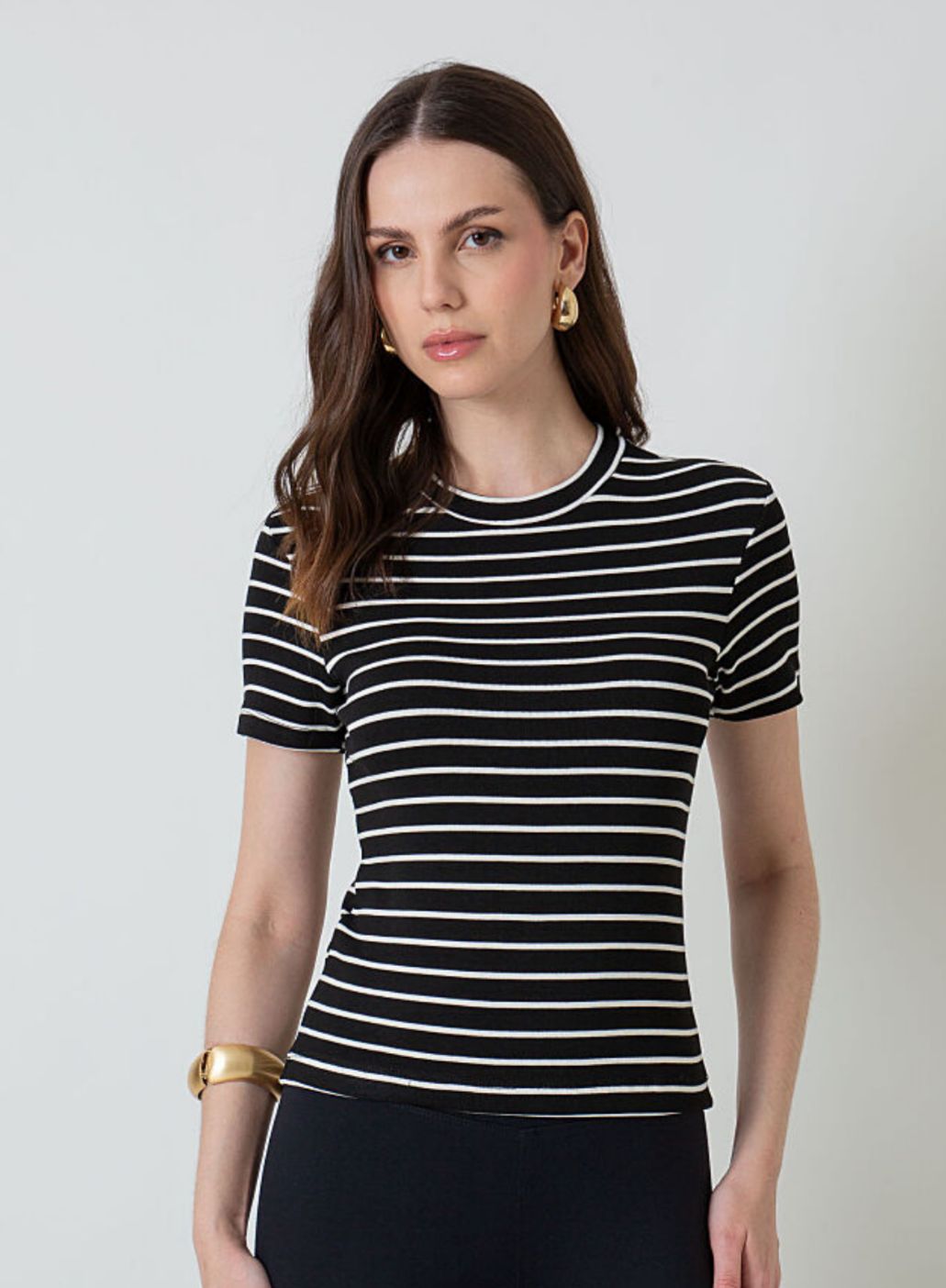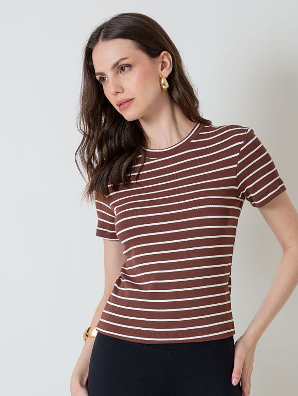 Blusa Listrada Decote Redondo