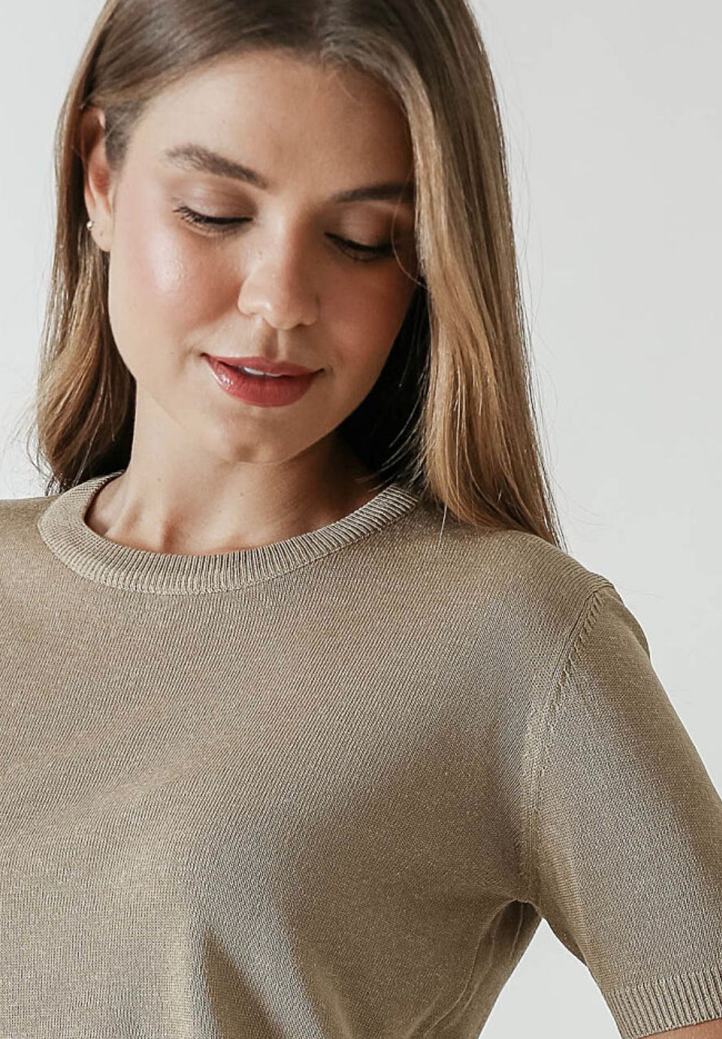 Blusa retilínea de linho com decote redondo