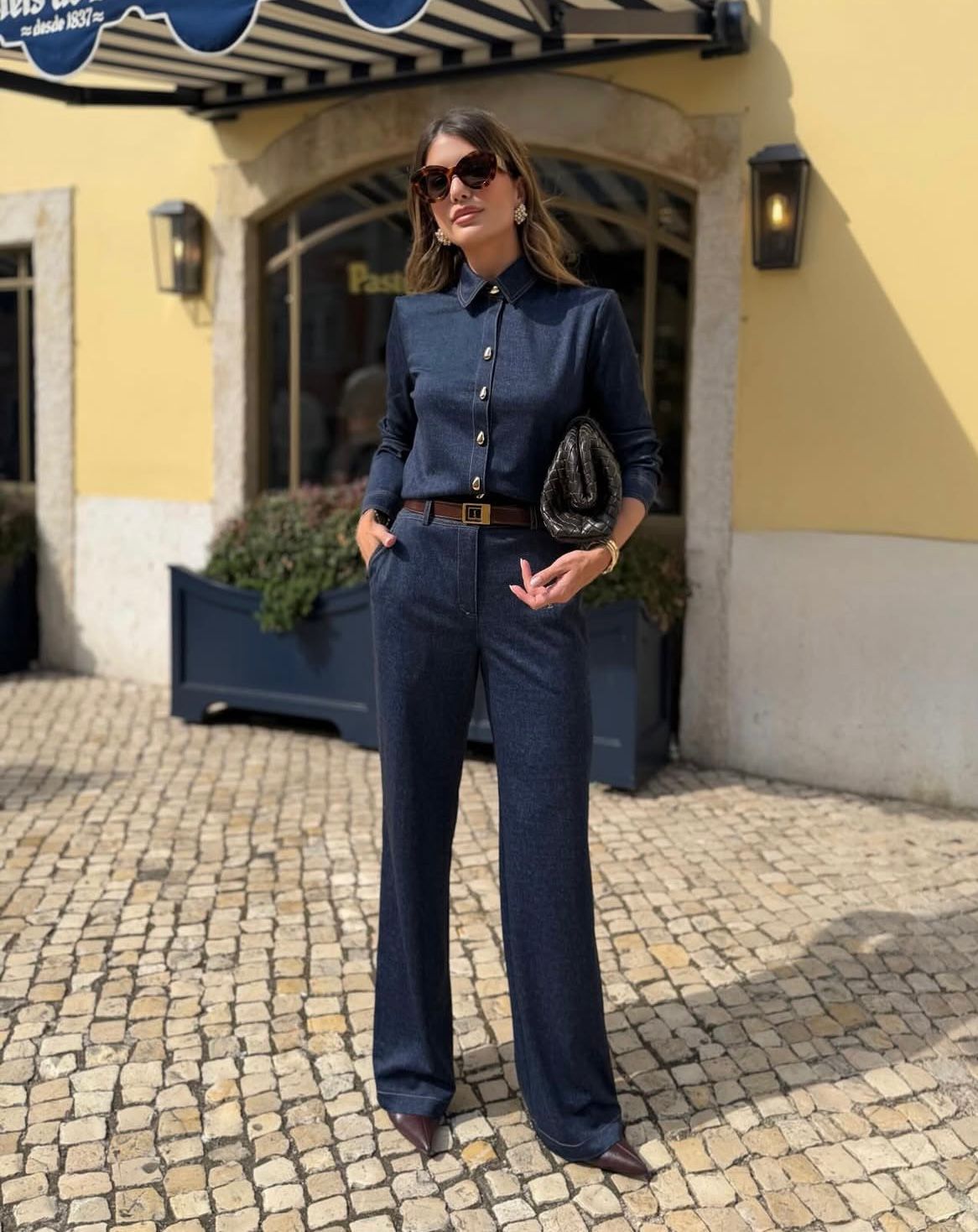 Calça feminina de alfaiataria com modelagem reta e caimento estruturado, desenvolvida para valorizar a silhueta com elegância e precisão. Os bolsos faca agregam funcionalidade ao design, enquanto os pespontos reforçam o acabamento refinado e contemporâneo. Versátil e atemporal, é uma peça-chave na moda feminina, ideal para composições que transitam entre o formal e o casual com equilíbrio. Proporciona conforto ao vestir e liberdade de movimento, mantendo um visual alinhado e sofisticado em diferentes ocasiões.