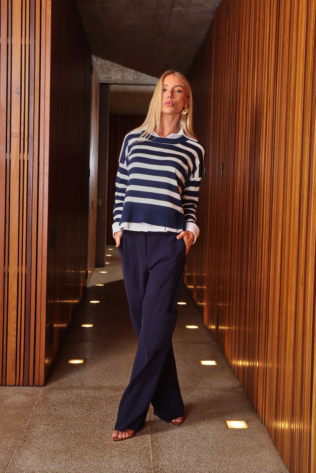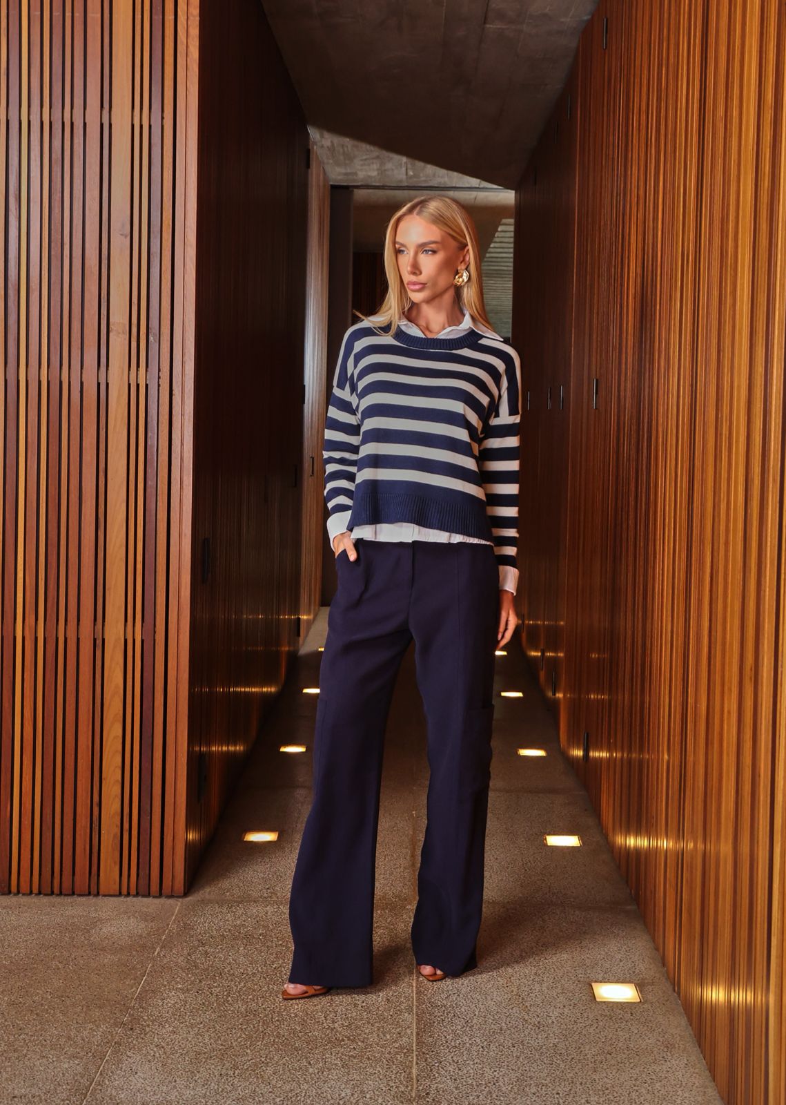 Detalhes • Modelagem ampla reta • Cintura com passantes • Bolso utilitário aplicado • Comprimento longo • Fechamento frontal • Poliviscose leve
