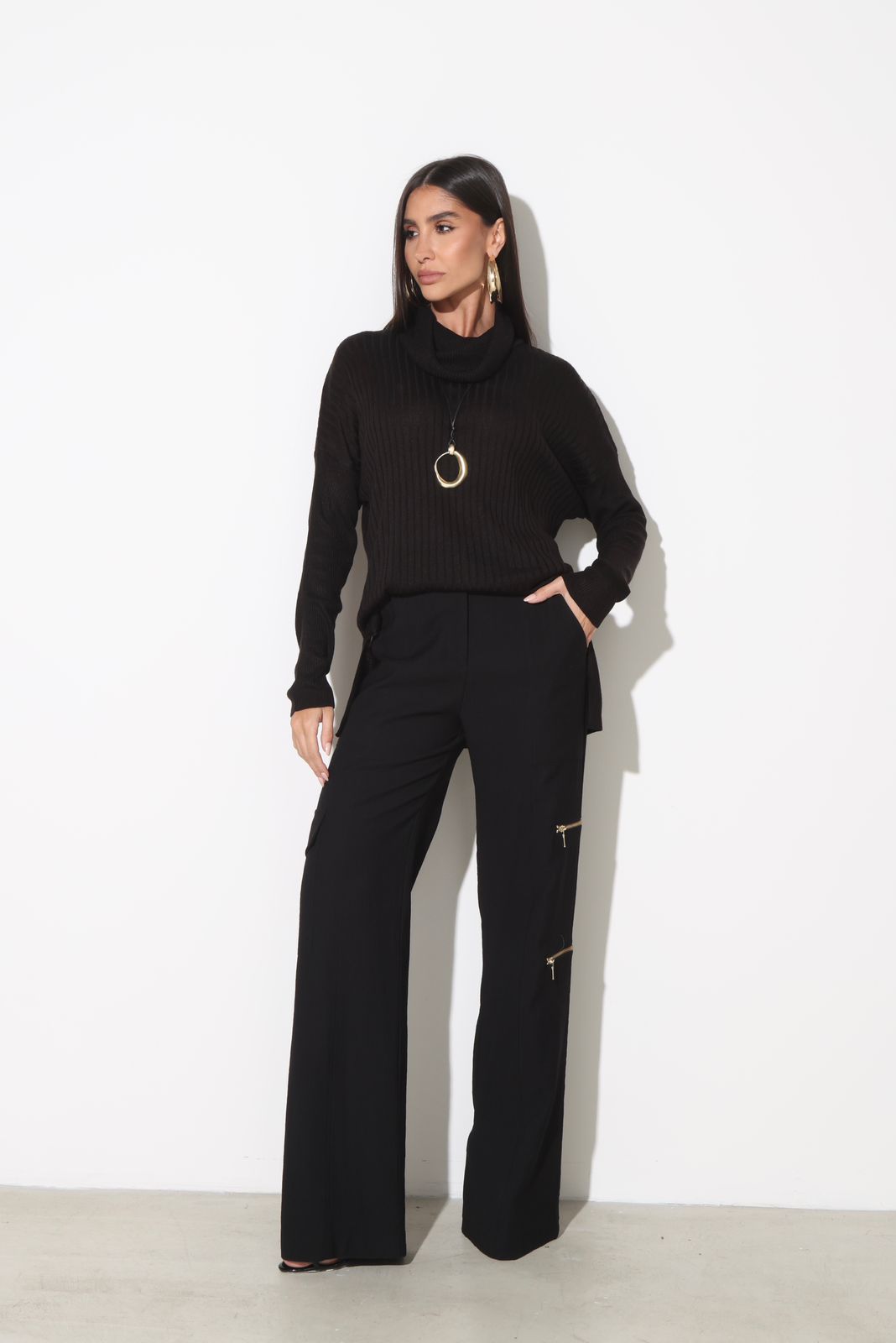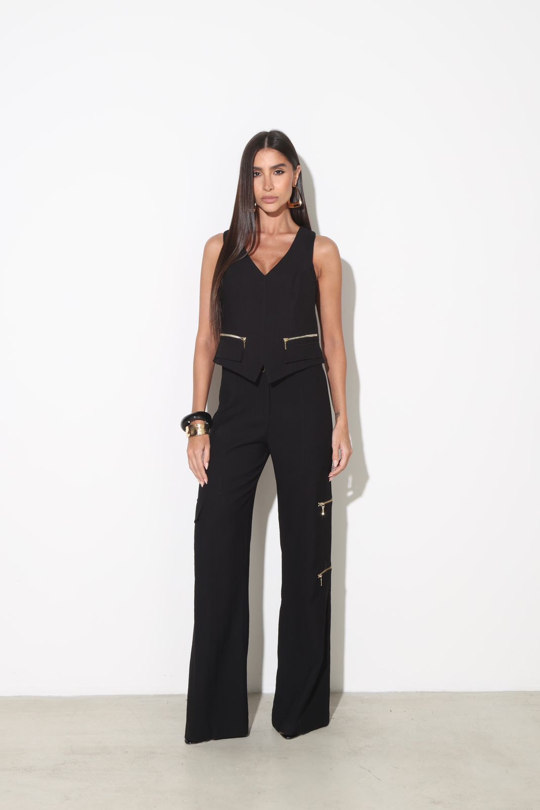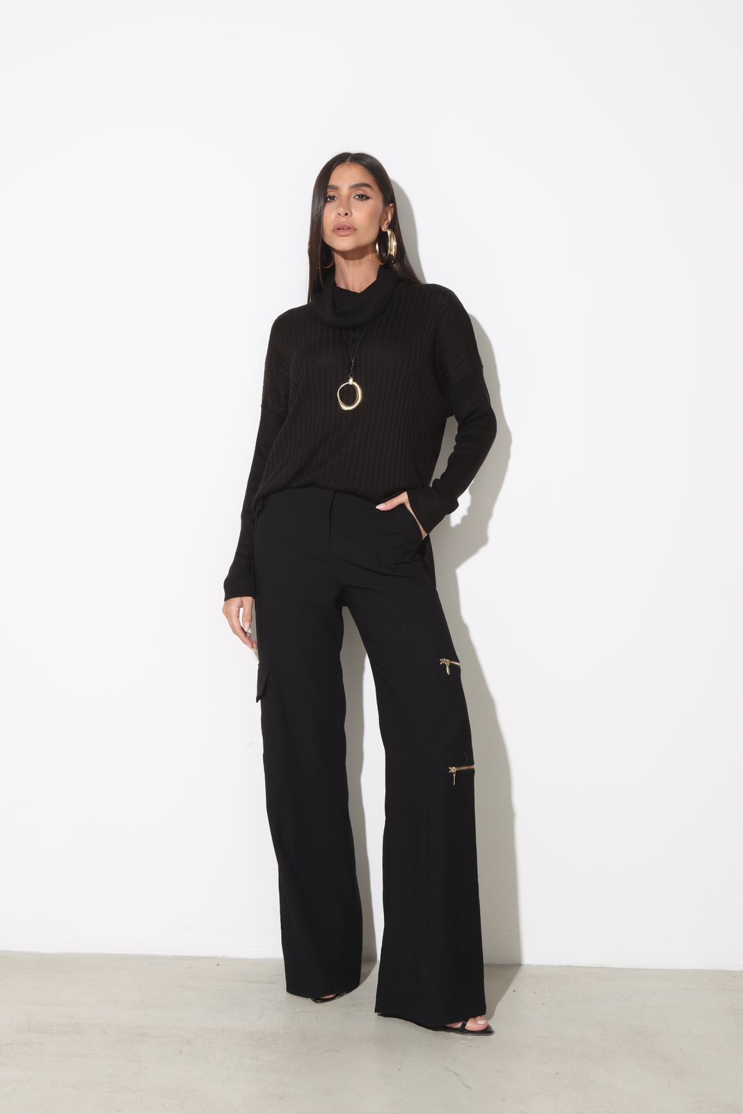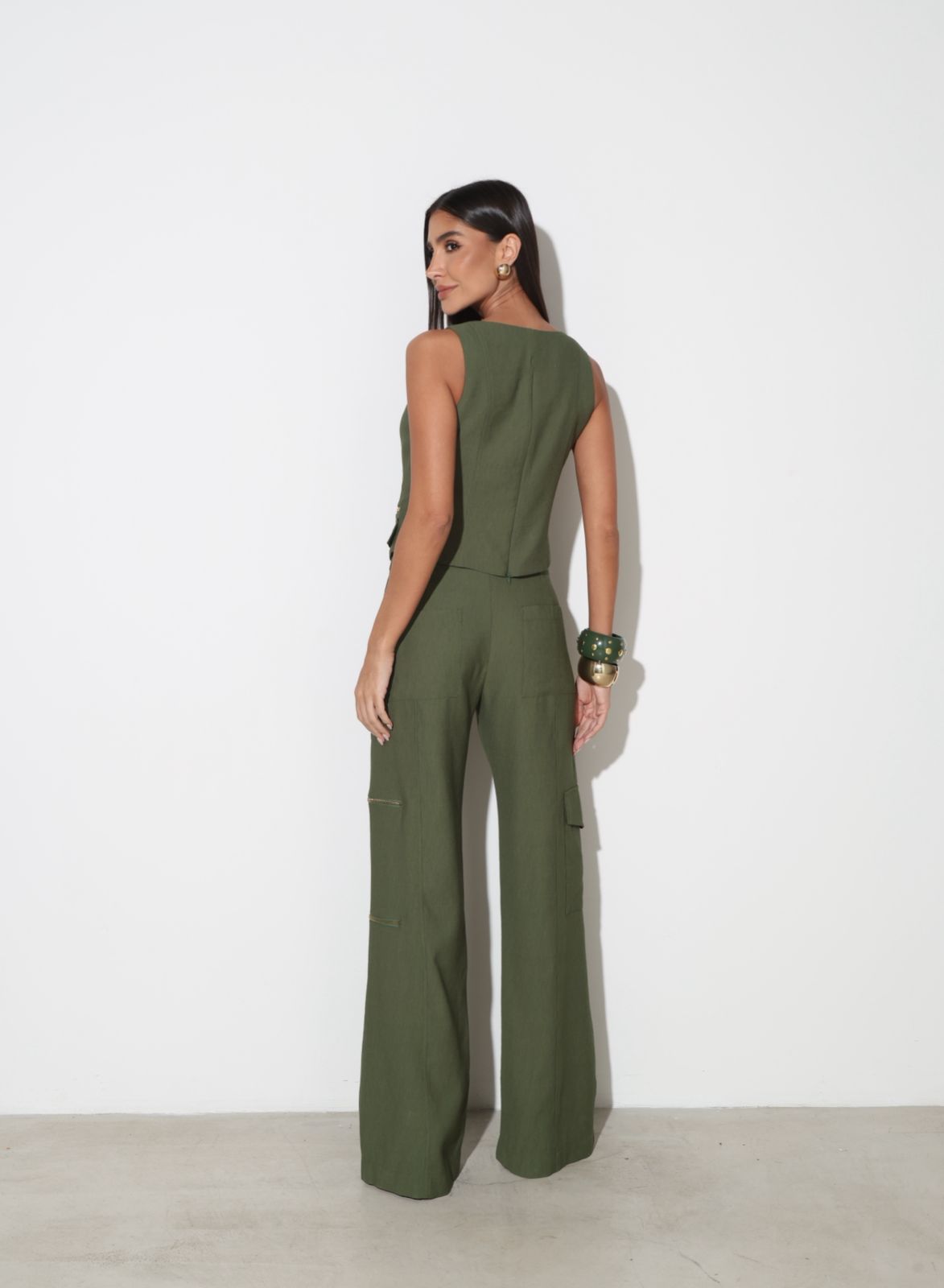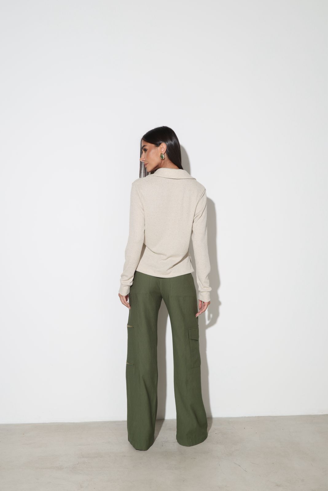 Bolsos utilitários na perna com detalhe de zíper