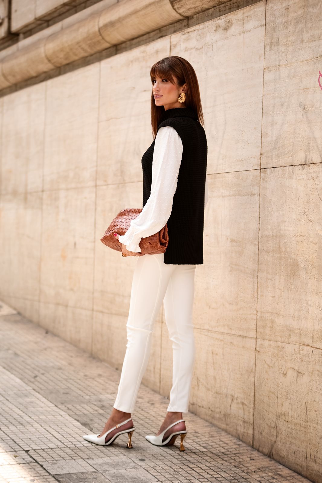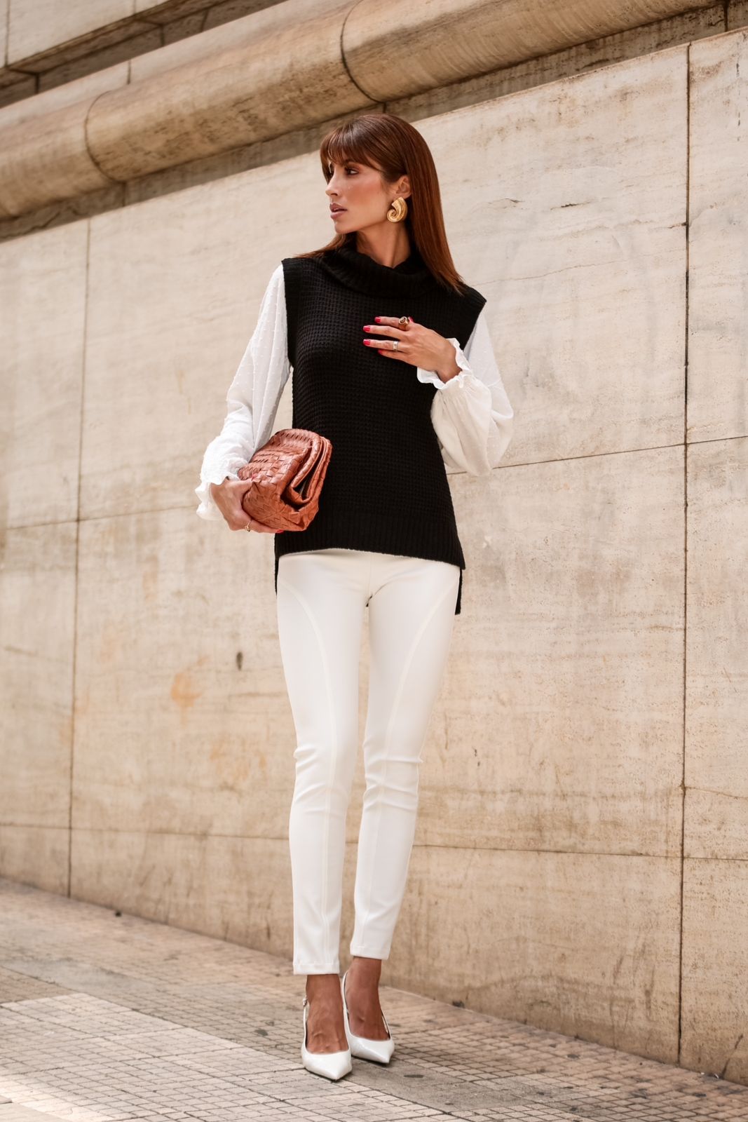 Calça tecido 68% viscose 27% poliamida 5% elastano.