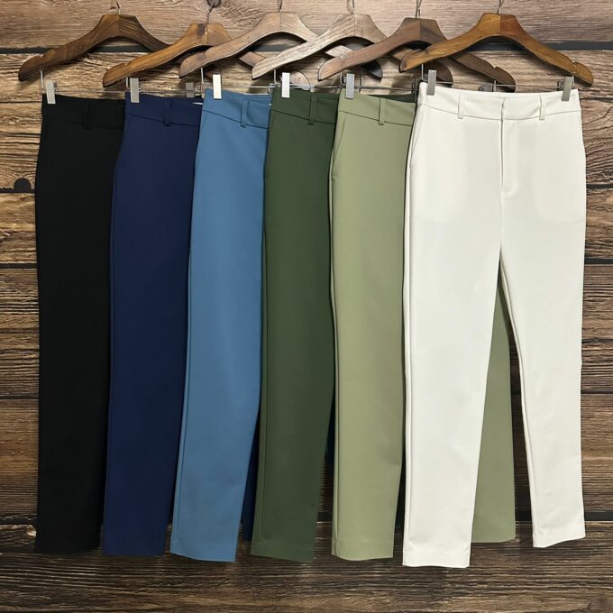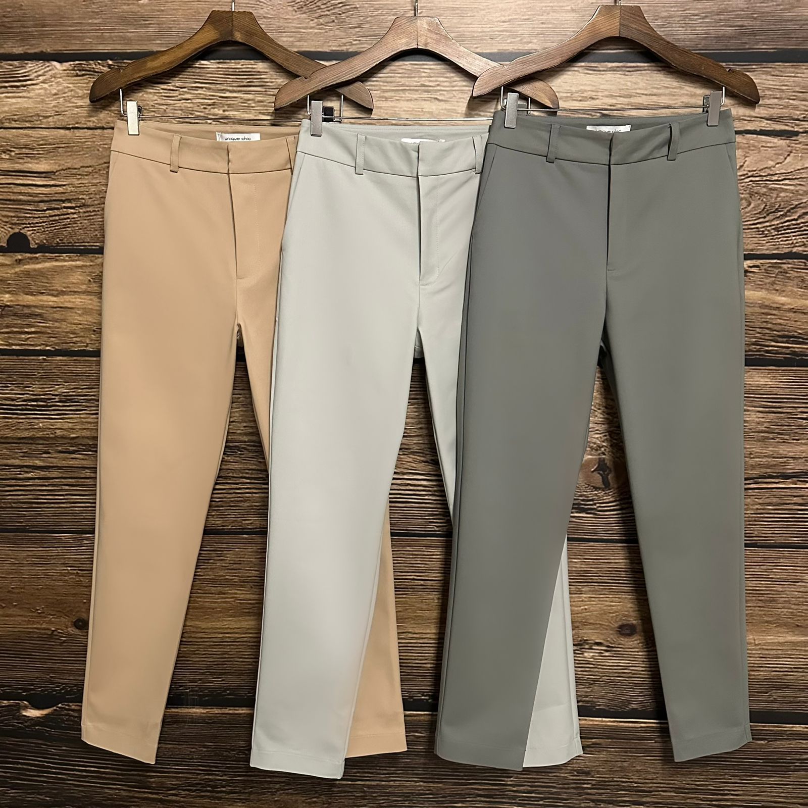 Calça confeccionada em sarja de poliamida com caimento encorpado, vista com ziper e fecho social interno. Sua modelagem tem caimento reto, com shape mais alinhado e refinado. É uma calça básica essencial para compor diversos looks para trabalho.
