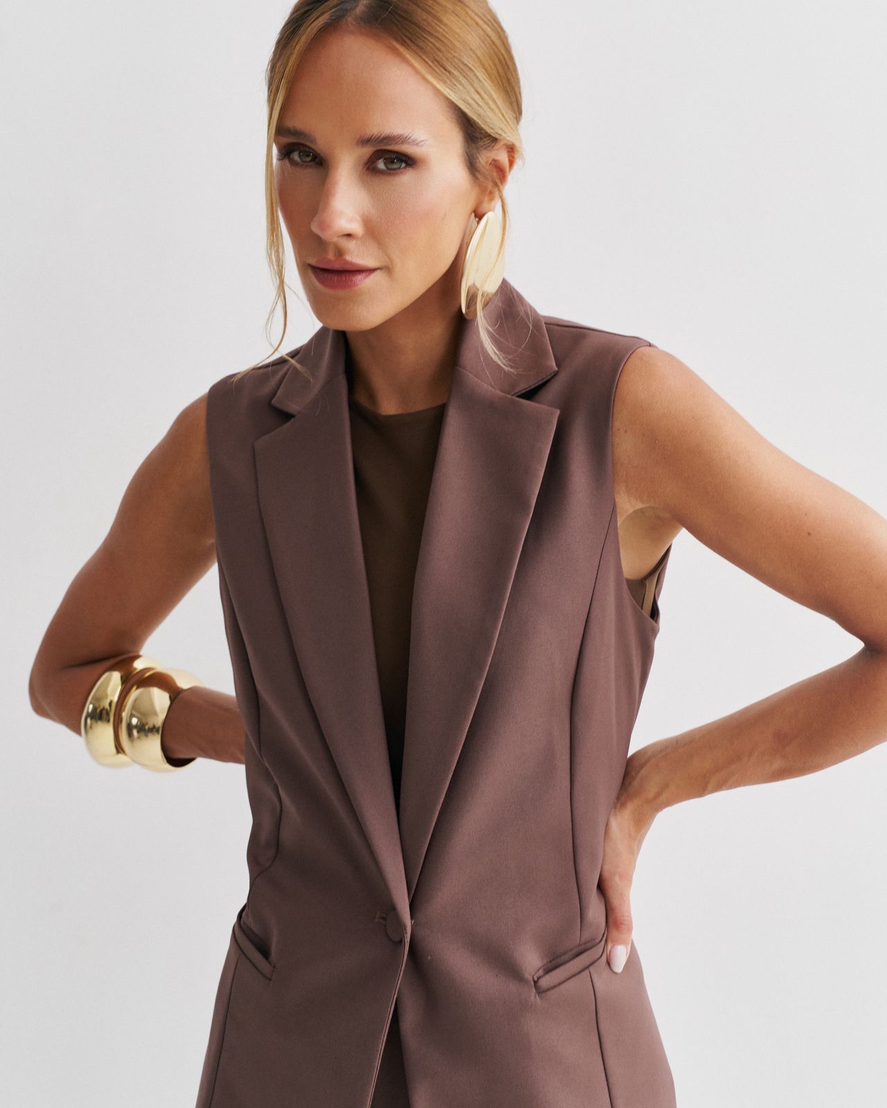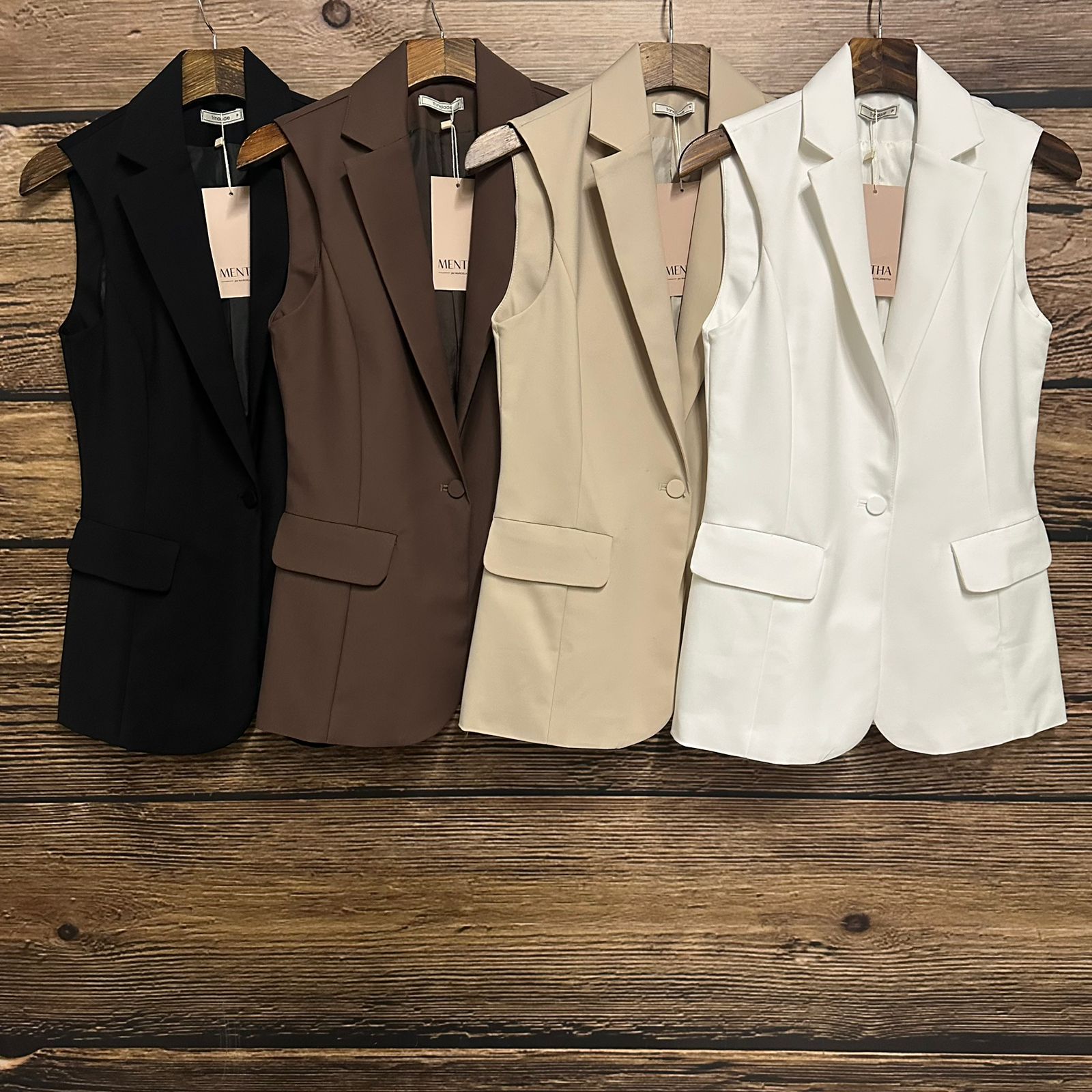 COLETE LONGO EM COTTON POLY COM FECHAMENTO EM BOTÃO FORRADO E BOLSOS FUNCIONAIS