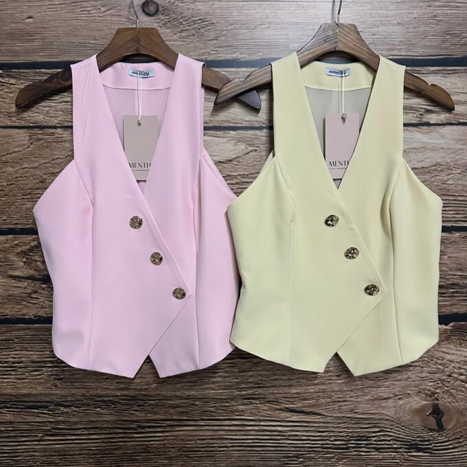 Colete alongado em alfaiataria mista com elastano encorpada. Possui fechamento em botão orgânico, botão interno e forro.