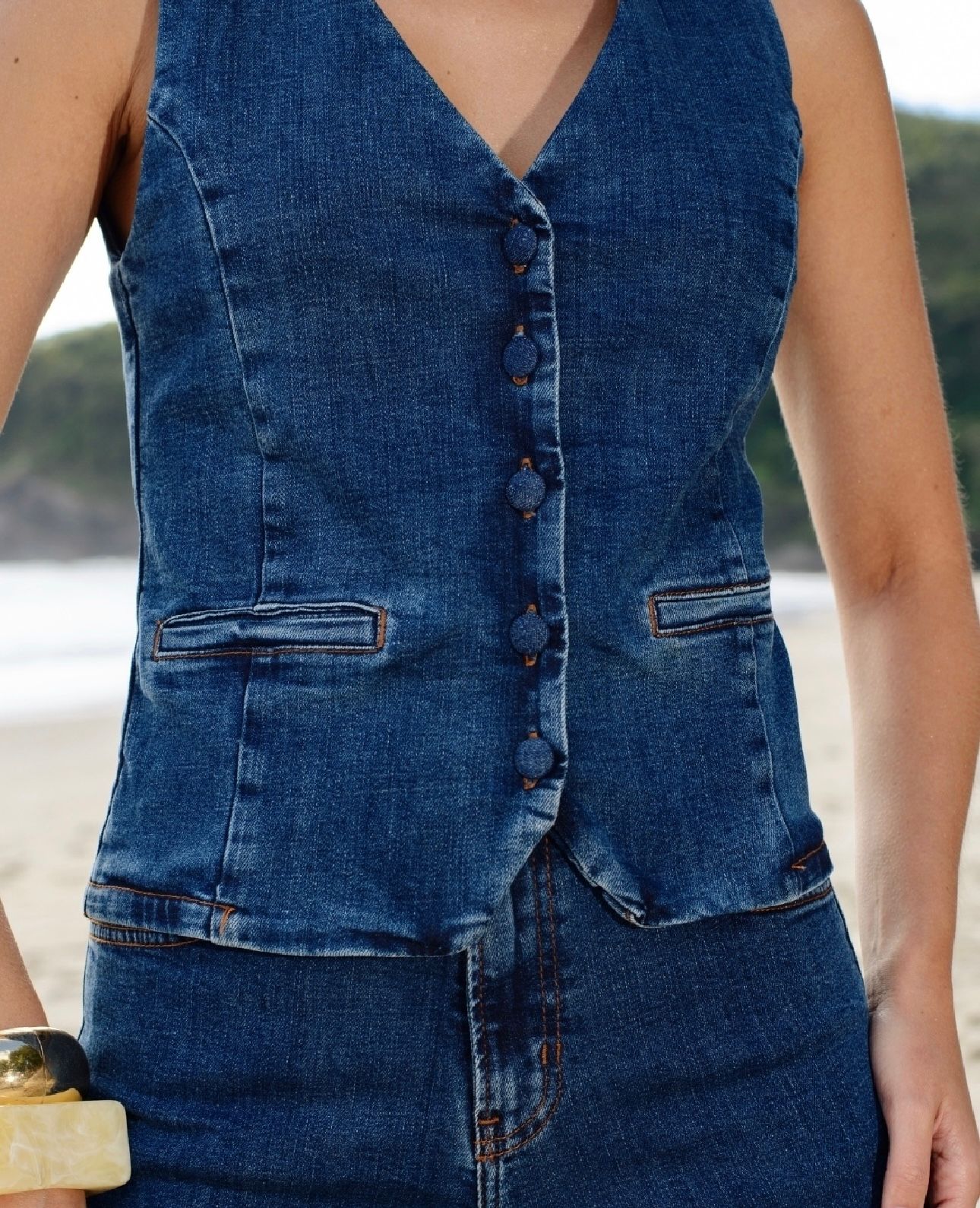 Colete Jeans Recortes