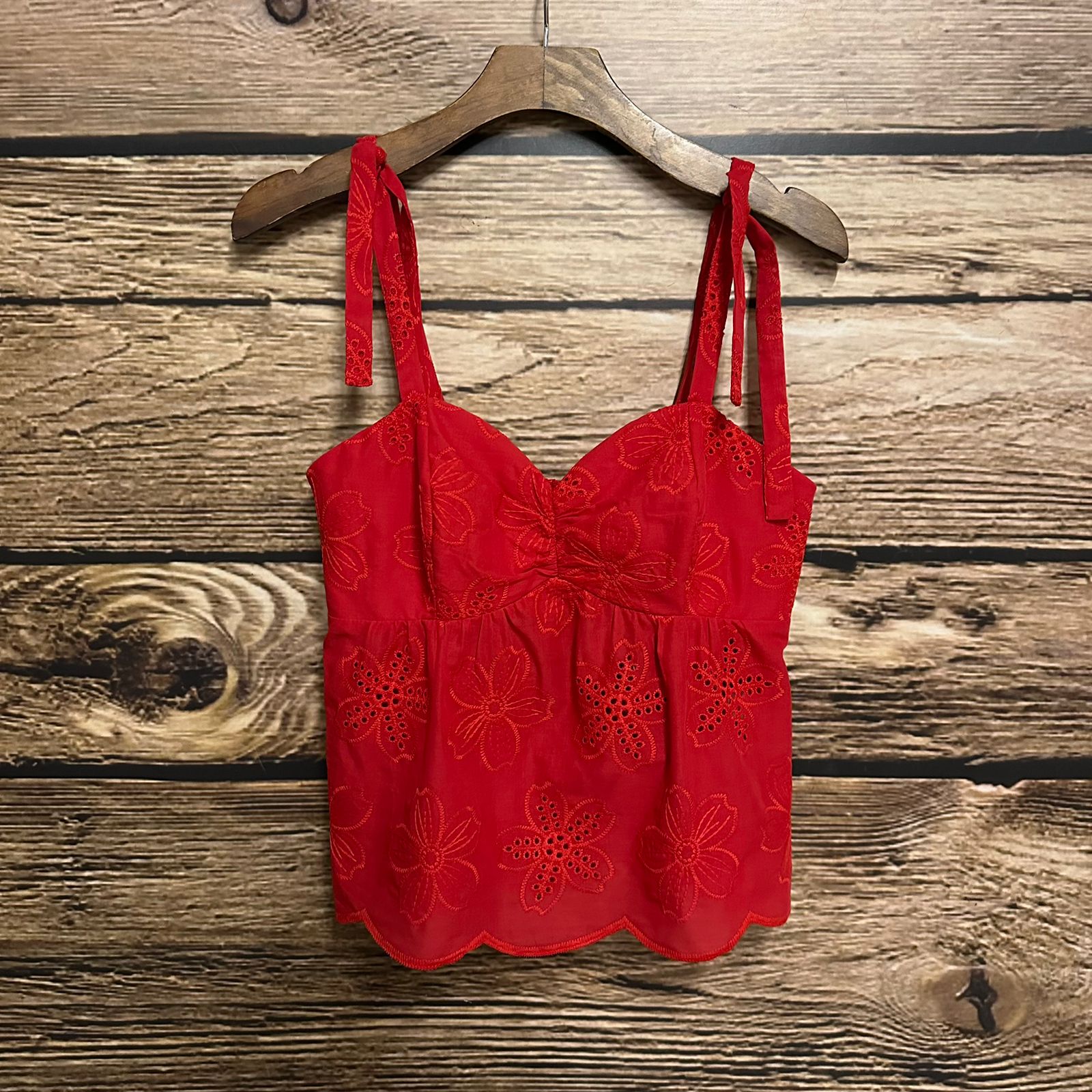 Alça em laise de algodão bordado. Possui franzido no busto, amarração na alça, elástico nas costas e busto forrado.