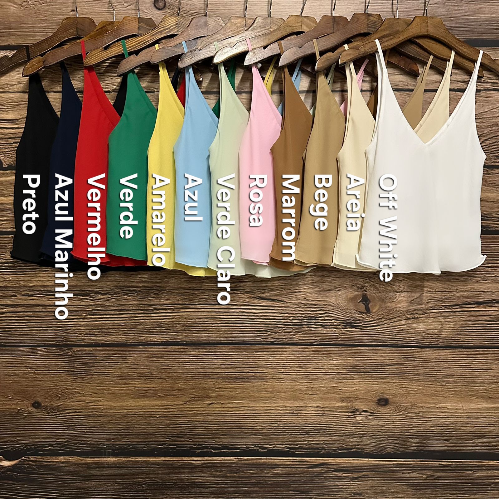 Amarelo, Areia, Azul, Azul Marinho, Bege, Marrom, Off White, Preto, Rosa, Verde, Verde Claro, Vermelho