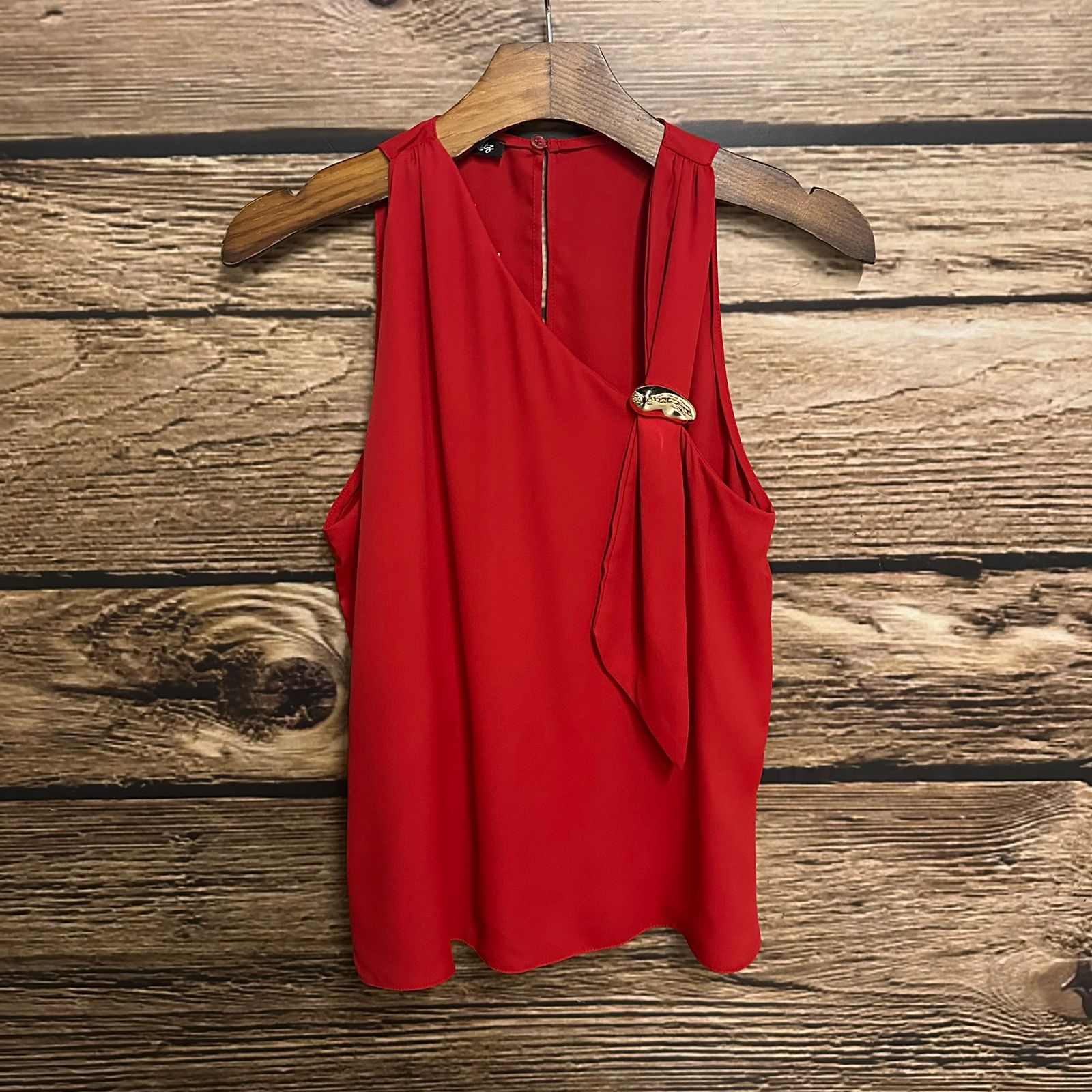 Regata em crepe liso. Possui decote assimétrico com alça lenço e detalhe com aviamento de metal, fechamento nas costas em botão e frente dupla com elástico na barra.