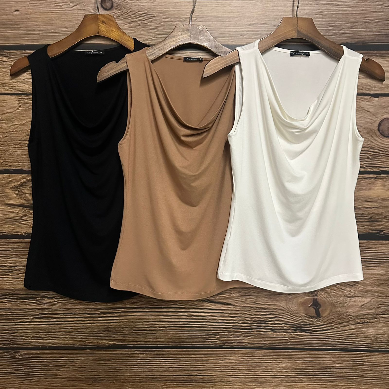 Regata visco com decote drapeado e acabamento na galoneira.