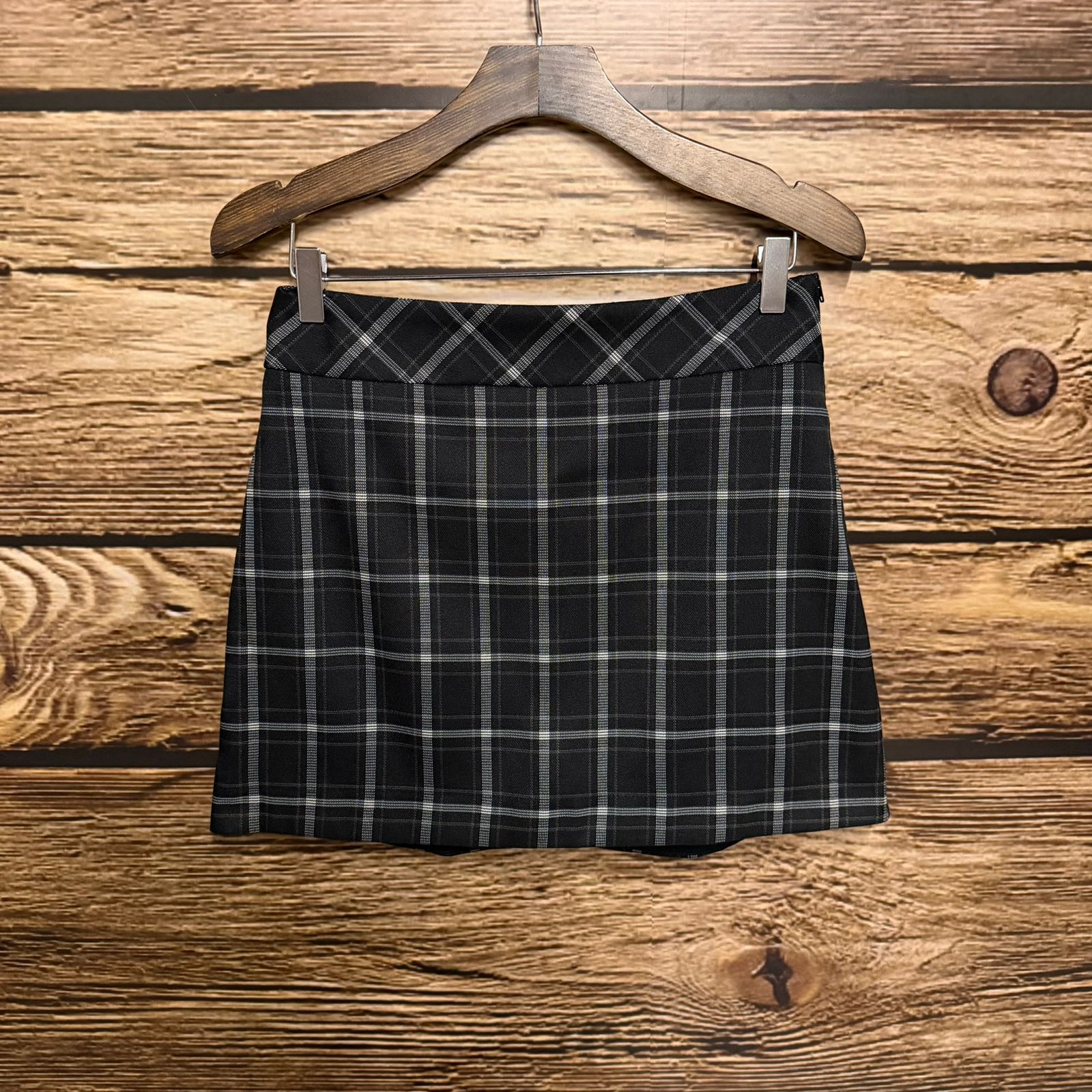 Saia mini em alfaiataria twill estampada. Possui cós com fechamento em zíper de nylon e forro shorts.