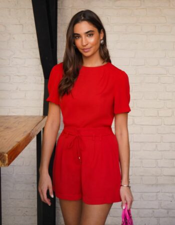 SHORTS EM POLY SPAN COM BOLSOS FRONTAIS FUNCIONAIS E FECHAMENTO EM BOTÃO PEROLADO