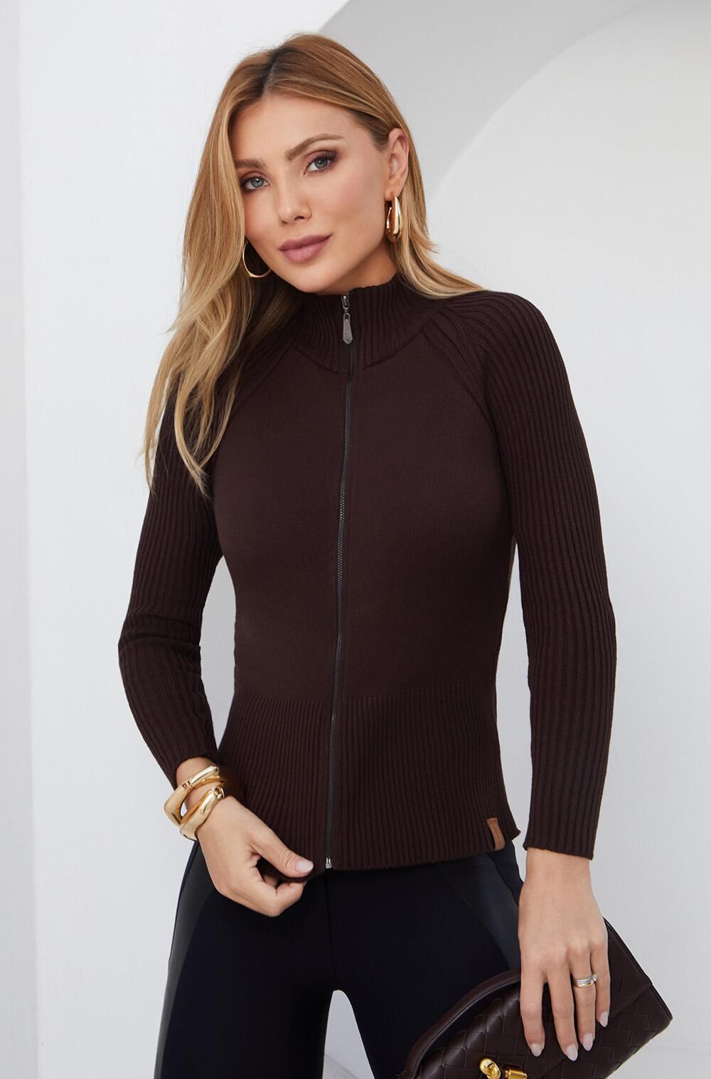Casaco em Tricot fio 70% viscose 30% poliamida.