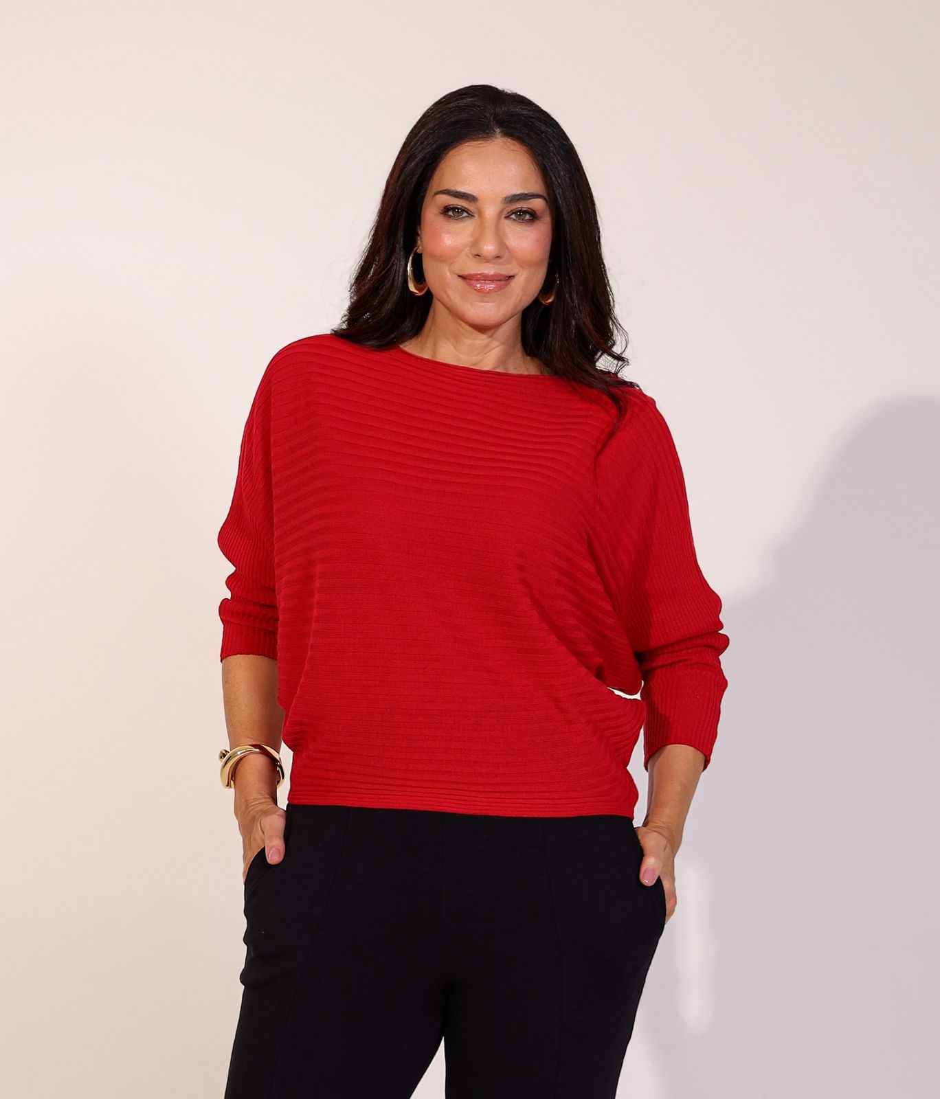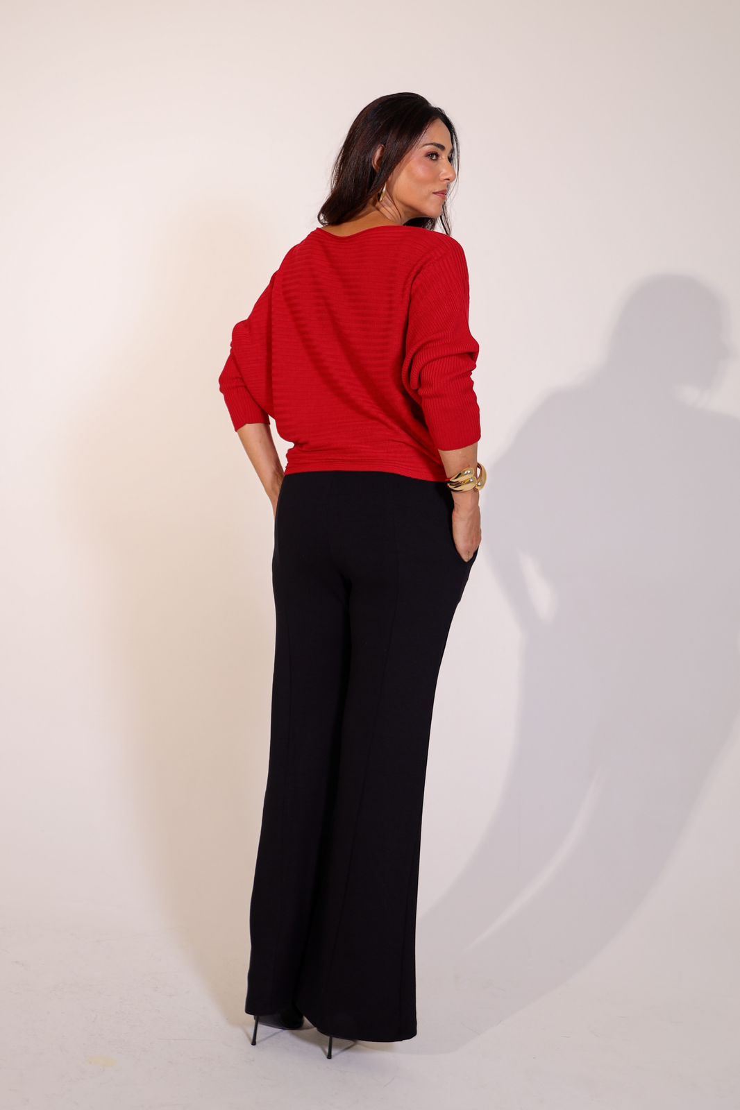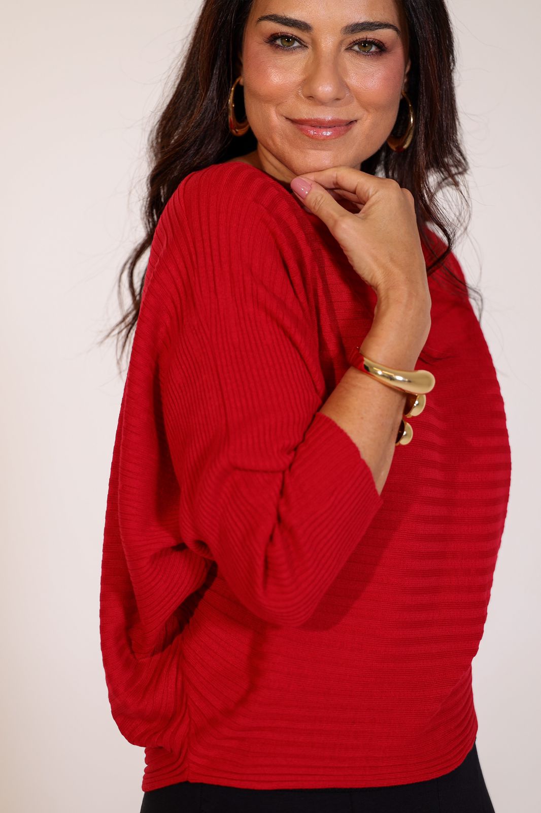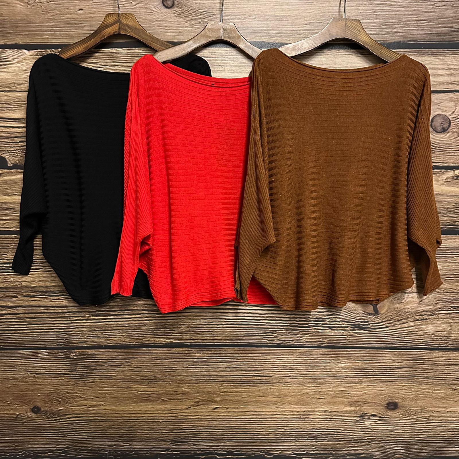 Blusa em Tricot fio 50% viscose 50% acrilico. Decote canoa. Manga morcego. Modelo canelado. Fio mescla para cores off e cinza.