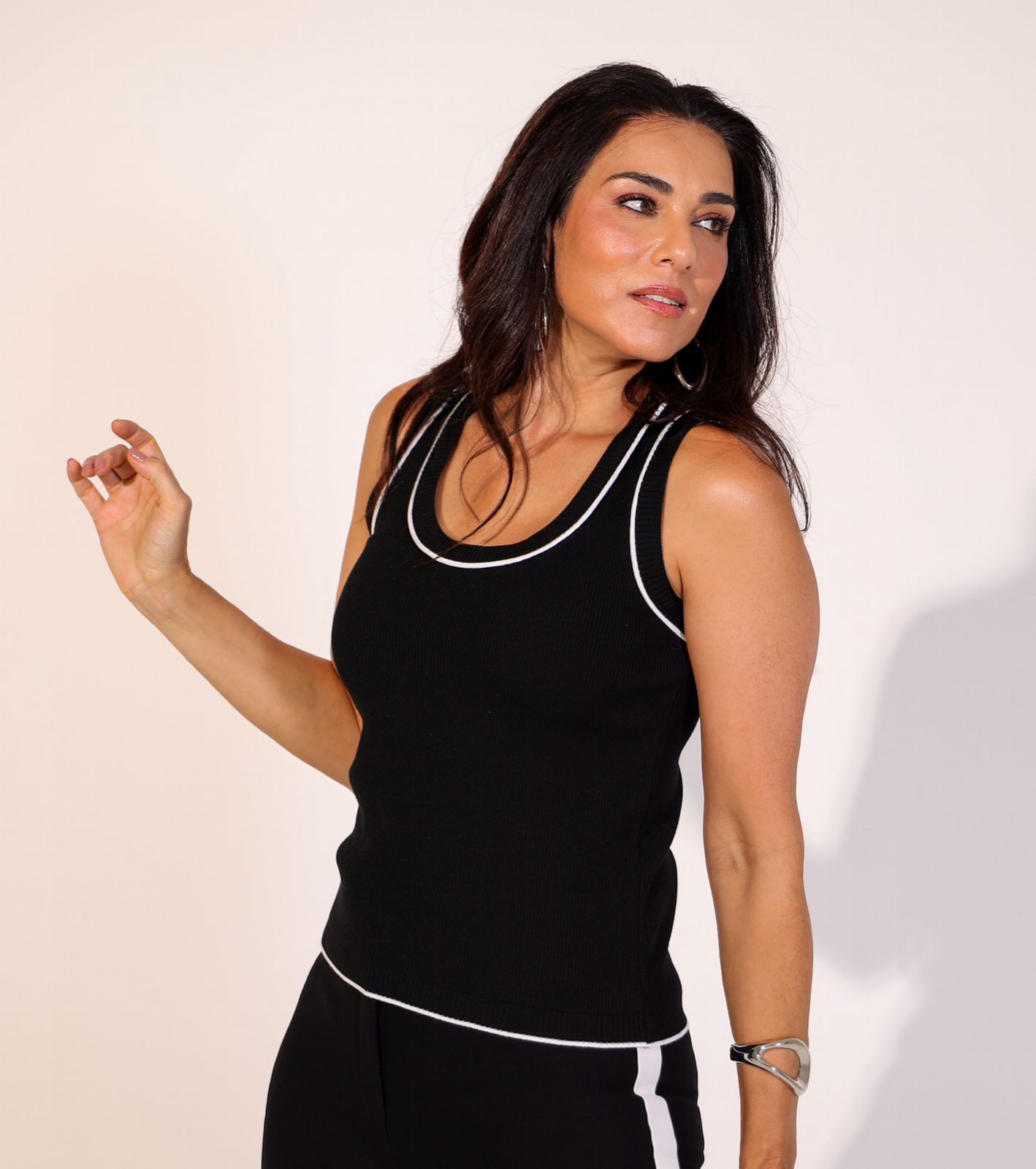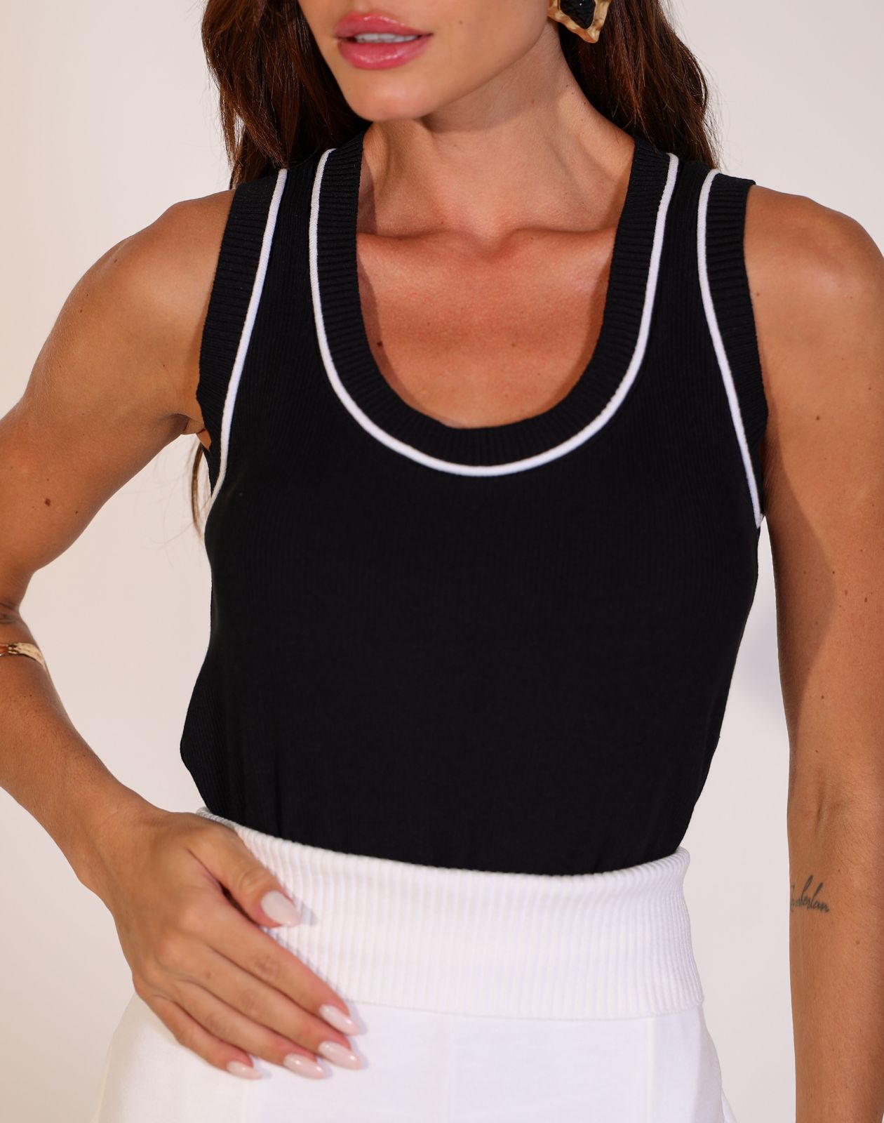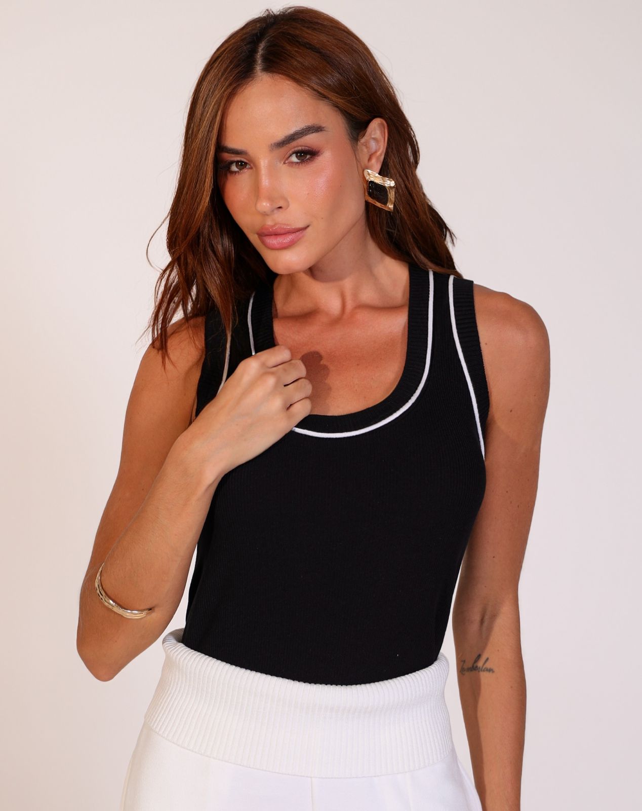 Regata em Tricot fio 70% viscose 30% poliamida.