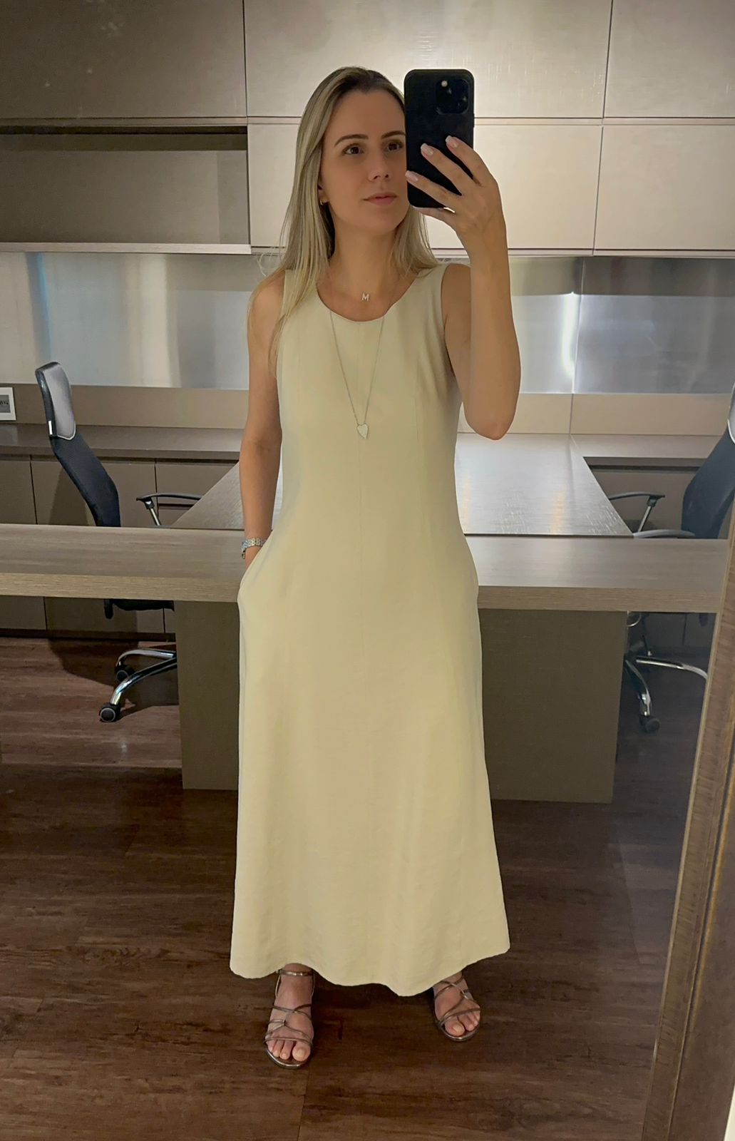 Vestido Longo Faixas Laterais Transpassadas Amarração