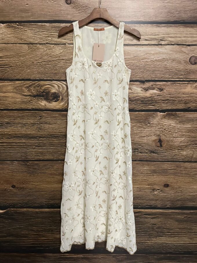 Vestido feminino bordado confeccionado em tela delicada com detalhe especial no decote, que valoriza o colo de forma elegante. O modelo conta com alças finas e caimento fluido, proporcionando conforto e movimento natural. Sofisticado e versátil, é ideal para festas, casamentos, formaturas e ocasiões especiais. O bordado agrega charme, modernidade e requinte, tornando o vestido a escolha perfeita para quem busca elegância e estilo refinado.