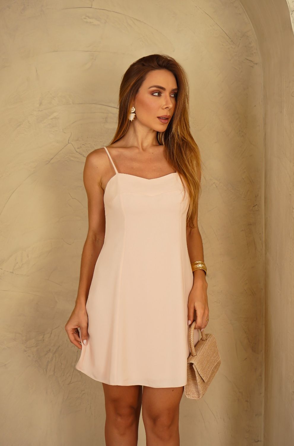 Vestido curto em alfaiataria leve twill. possui decote duplo, alças reguláveis e forro. Acompanha cinto do mesmo tecido em roletê duplo com fivela de metal.