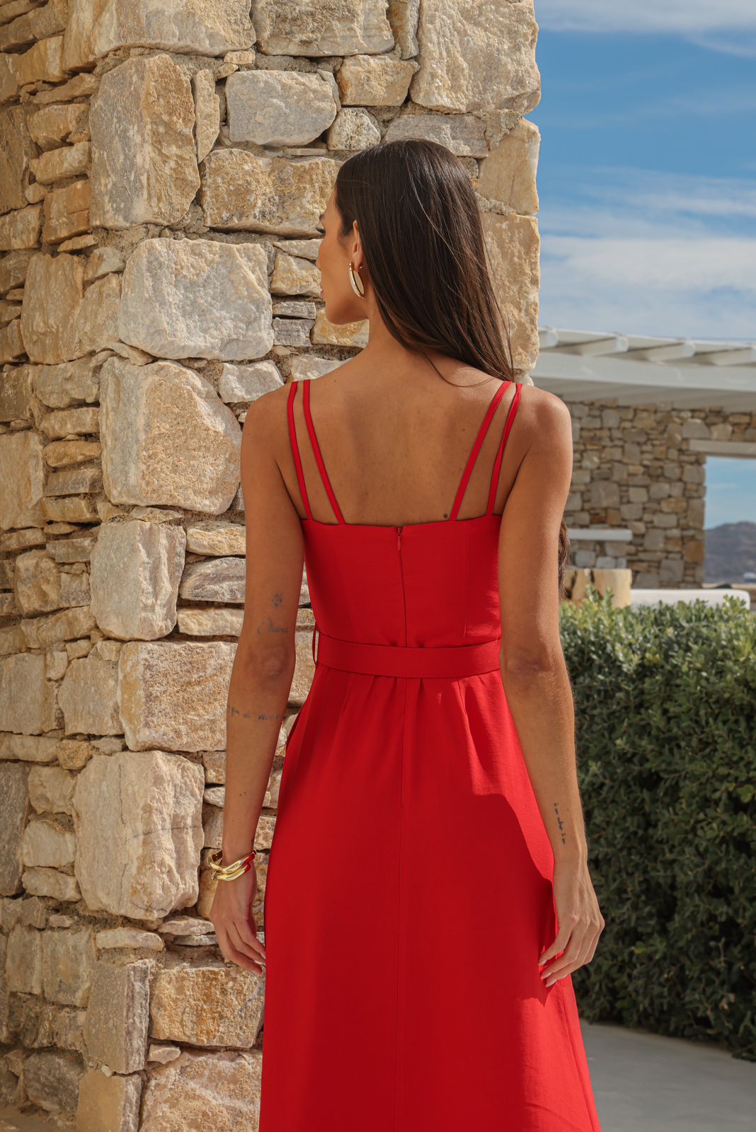O Vestido Geovana é a definição de elegância contemporânea. Confeccionado em alfaiataria de poliviscose, combina estrutura leve, caimento fluido e toque acetinado. A modelagem acinturada realça a silhueta com naturalidade, enquanto o decote reto e as alças duplas trazem um toque moderno. O cinto com fivela forrada complementa o visual com sofisticação e equilíbrio.