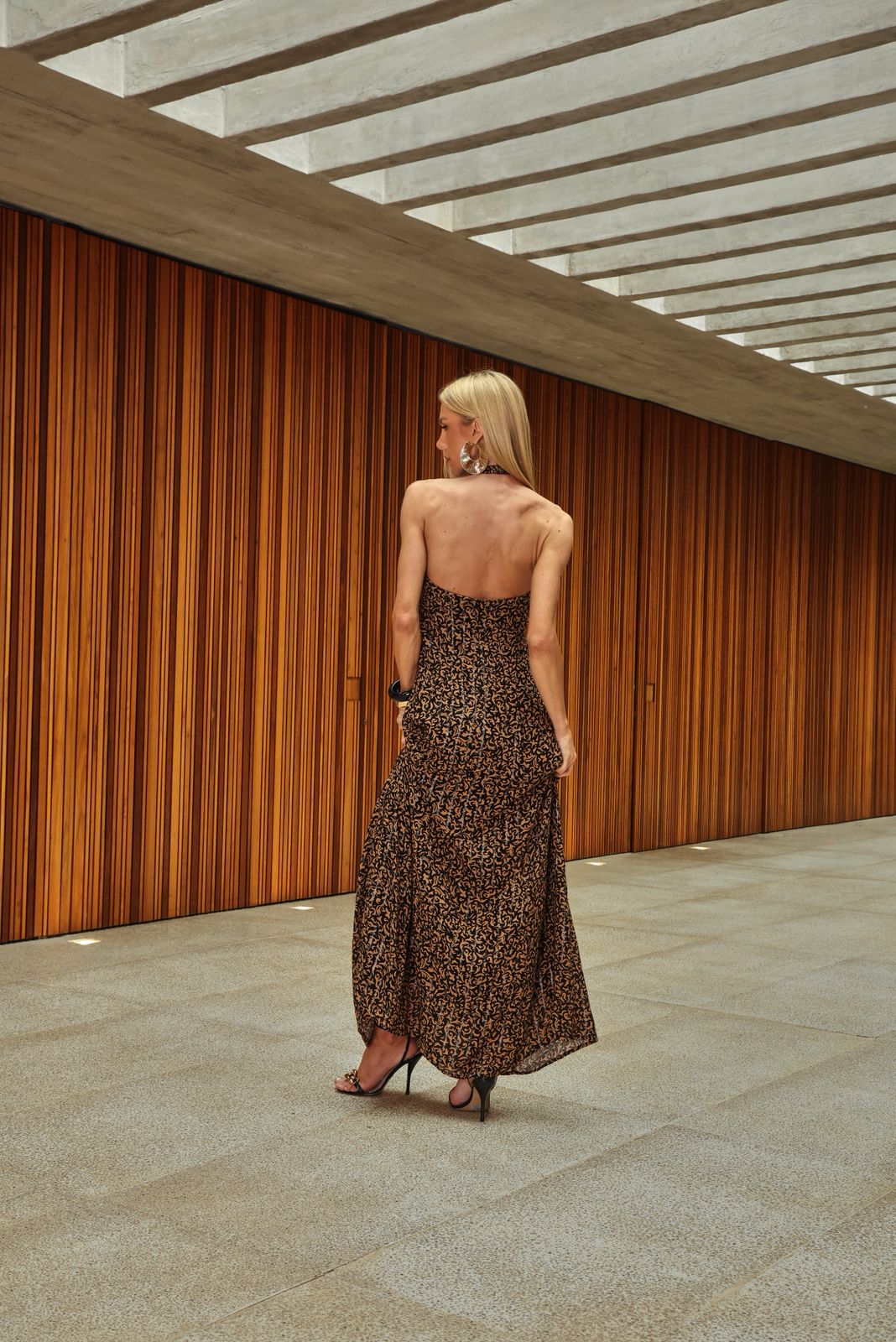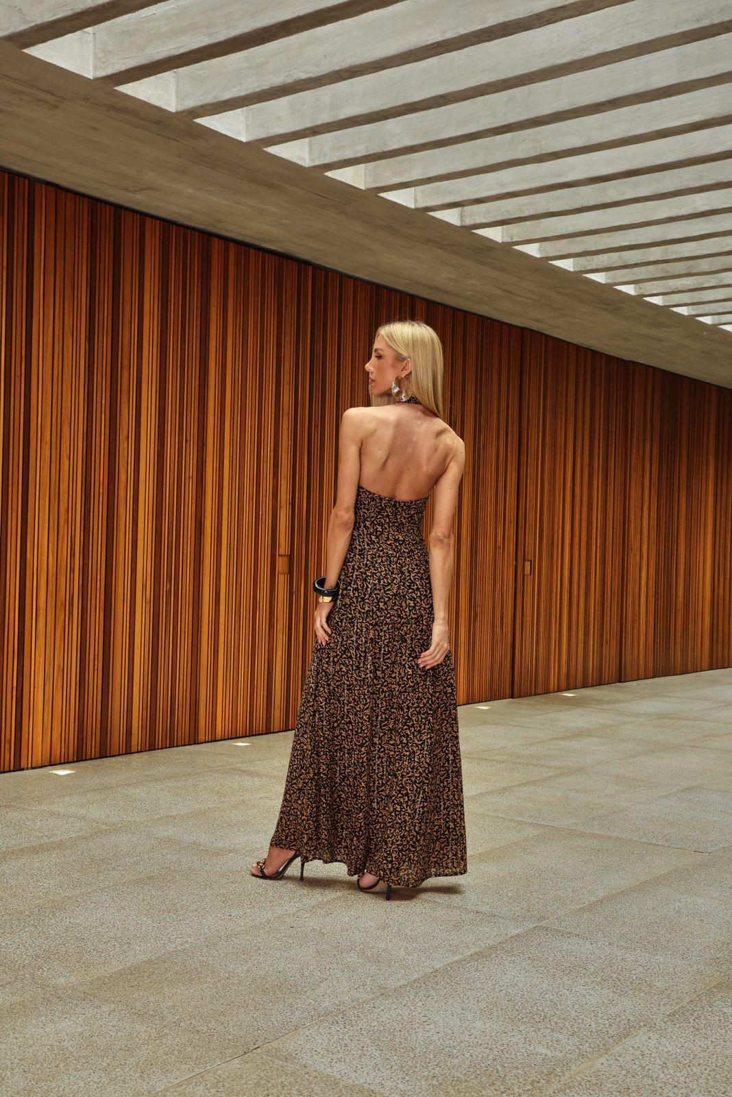 • Busto ajustado e saia fluida